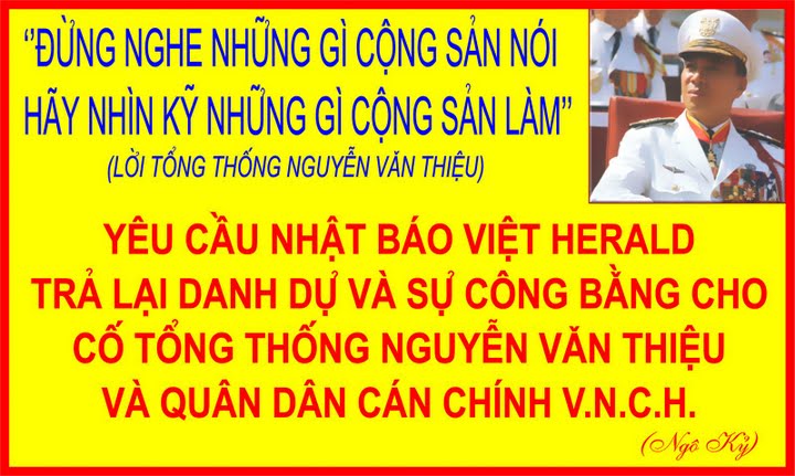 Ban Tổ Chức Lễ Tưởng Niệm TT Nguyễn Văn Thiệu Phản đối báo Việt Herald PDF Print E-mail