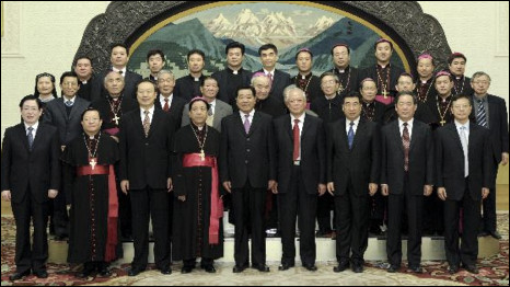 Ủy viên Bộ Chính trị Giả Khánh Lâm chụp hình với các tân lãnh đạo của giáo hội Thiên Chúa giáo Yêu nước